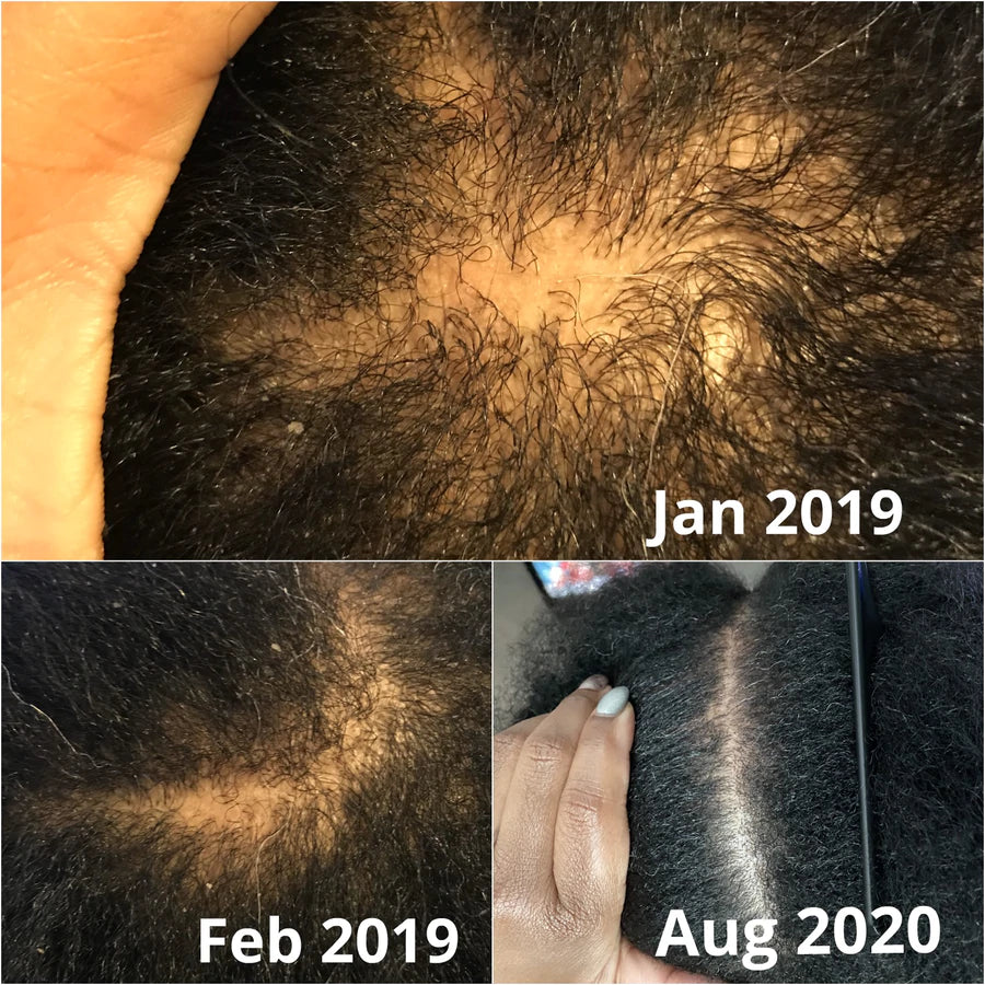 The head of hair in this photo belongs to our CEO - Yogi!! The struggle to maintain a healthy, full head of hair has plagued my scalp for the longest. I used my creation faithfully for a month beginning in January 2019 and by February, my hair had already started filling in. A year and some months later in August of 2020, my problem area has completely filled in!